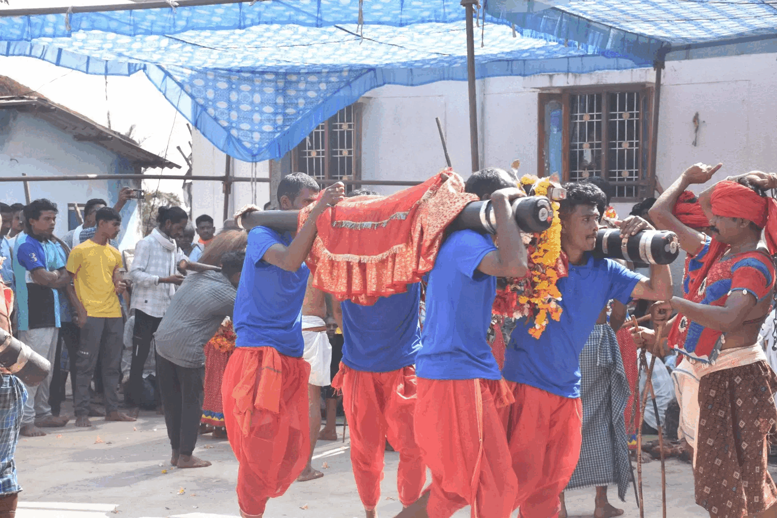 ग्रामीणों द्वारा परंपरागत तरीके से किया गया देव विग्रहों की अगवानी