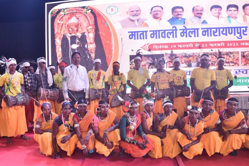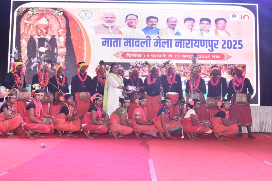 नारायणपुर, 20 फरवरी 2025// माता मावली मेला में प्रतिदिन रंगारंग कार्यक्रमों की प्रस्तुति होगी। मेले के प्रथम दिन 19 फरवरी को स्थानीय लोक नर्तक दलांे द्वारा रंगारंग कार्यक्रम की प्रस्तुति दी गई। लोक नर्तक दलों द्वारा मांदरी नृत्य, गेड़ी नृत्य जैसे विभिन्न पारंपरिक नृत्य किया गया। लोक नृत्य मे जिले के विभिन्न ग्रामों से आये युवक युवतियो ने पारंपरिक वेशभूषा, श्रृगांर करके पूरे ताल और लय के साथ नृत्य प्रस्तुति देकर दर्शकों को मंत्र मुग्ध कर दिया। स्थानीय नृत्य दलों को जिला प्रशासन द्वारा सम्मान राशि प्रदाय किया गया। इसी क्रम मे 20 फरवरी को बस्तर संस्कृति गु्रप लोक रंग सिद्धार्थ महाजन की प्रस्तुति दी जायेगी। इस अवसर पर नगरपालिका अध्यक्ष इंद्रप्रसाद बघेल, गौतम एस गोलछा, कलेक्टर प्रतिष्ठा ममगाईं, सीईओ जिला पंचायत आकांक्षा शिक्षा खलखो, अपर कलेक्टर बीरेन्द्र बहादुर पंचभाई, जनप्रतिनिधि एवं प्रशासन के विभिन्न अधिकारी एवं कर्मचारी के अलावा अन्य गणमान्य नागरिकगण उपस्थित थे।