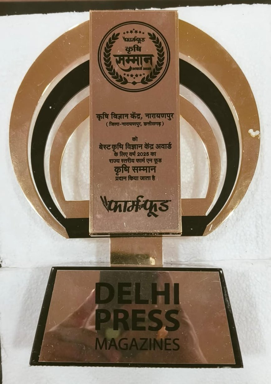 नारायणपुर, 28 फरवरी 2025// फार्म एन फूड कृषि सम्मान अवार्ड्स मध्यप्रदेश एवं छत्तीसगढ़ द्वारा कृषि सम्मान अवार्ड्स 2025 का आयोजन 28 फरवरी 2025 को भोपाल मध्यप्रदेश में किया गया। कार्यक्रम में कृषि विज्ञान केंद्र नारायणपुर के कृषक सुरेन्द्र नाग को बेस्ट फार्मर्स अवार्ड इन इंटीग्रेटेड फ़ार्मिंग अवार्ड 2025 मिला। यह पुरस्कार कार्यक्रम के मुख्य अतिथि सहकारिता मंत्री मध्यप्रदेश विश्वाश सारंग एवं विशिष्ट अतिथि कौशल विकास एवं रोजगार विभाग राज्यमंत्री गौतम टेंटवाल स्वतंत्र प्रभार द्वारा प्रदाय किया। ग्राम करलखा के सुरेन्द्र नाग जो कृषि विज्ञान केंद्र नारायणपुर के तकनीकी मार्गदर्शन एवं सहयोग से कृषक समन्वित कृषि प्रणाली को अपनाया जिसमें फसल उत्पादन के साथ-साथ पशुपालन, मुर्गी पालन, मछली पालन, मशरूम उत्पादन, बागवानी, वर्मी कम्पोस्ट, हेचरी यूनिट एवं अन्य घटक सम्मिलित है जिससे इन्होने अपनी आर्थिक स्थिति को सुदृढ़ किया एवं वर्ष पर्यंत आय का स्रोत भी स्थापित किया।
