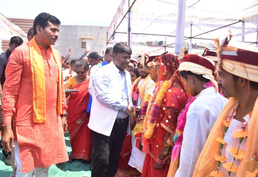 उन्होंने कार्यक्रम को संबोधित करते हुए नवदम्पतियों को शुभकामनाएं देते हुए सुखमय जीवन की बधाई देते हुए कहा कि यह समाजिक व्यवस्था के अनुरूप जीवन का एक समाजिक व्यवस्था के साथ विवाह संपन्न करई जाती है। उन्होंने दहेज प्रथा का प्रकाश डालते हुए कहा कि हमारे वंनाचल में यह व्यवस्था नहीं होने के कारण आसानी के साथ शादी संपन्न कराई जाती है। प्रदेश के मुख्यमंत्री श्री विष्णुदेव साय के मंशानुरूप गरीब परिवारों के बेटे बेटियों का सुखमय जीवन व्यतित करने के लिए सरकार द्वारा मुख्यमंत्री कन्या विवाह योजना प्रारंभ किया गया है। प्रदेश के लाखों बेटे बेटियों को इसका लाभ मिल रहा है। उन्होंने मुख्यमंत्री के नवदम्पतियों को बधाई संदेश को देते हुए सुखमय जीवन जीने की शुभकामनाएं दी।