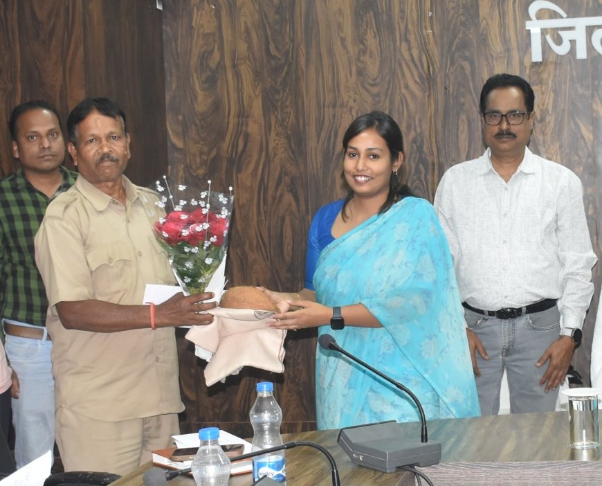 नारायणपुर, 28 मार्च 2025// जिला कार्यालय के सभा कक्ष में कलेक्टर प्रतिष्ठा ममगाईं ने जिले के सेवानिवृत्ति कर्मचारियों को सम्मानित करते हुए पेंशन प्राधिकार पत्र प्रदाय किया। शिक्षा विभाग के बिसनाथ बघेल, बुदलू राम उसेण्डी और वन विभाग के श्रवण कुमार नाग का सेवानिवृत्त होने पर शाल एवं श्रीफल भेंट करते हुए पीपीओ प्रदाय किया गया। इस अवसर पर कलेक्टर ने सेवानिवृत हो रहे समस्त कर्मचारियों को स्वस्थ एवं सुखमय जीवन की कामना करते हुए शुभकामनाएं दी। इस अवसर पर मुख्य कार्यपालन अधिकारी आकांक्षा शिक्षा खलखो, जिला कोषालय अधिकारी हरीश साहू, सहायक आयुक्त आदिवासी विकास राजेन्द्र सिंह, जिला शिक्षा अधिकारी रमेश कुमार निषाद, बीईओ कृष्णनाथ गोटा और दीनबंधू रावटे उपस्थित थे।