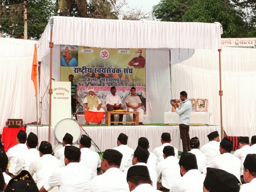 राष्ट्रीय स्वयंसेवक संघ जिला- नारायणपुर द्वारा आयोजित चैत्र शुक्ल प्रतिपदा उत्सव में हिंदू नव वर्ष और पथ संचलन का कार्यक्रम आयोजित किया गया।