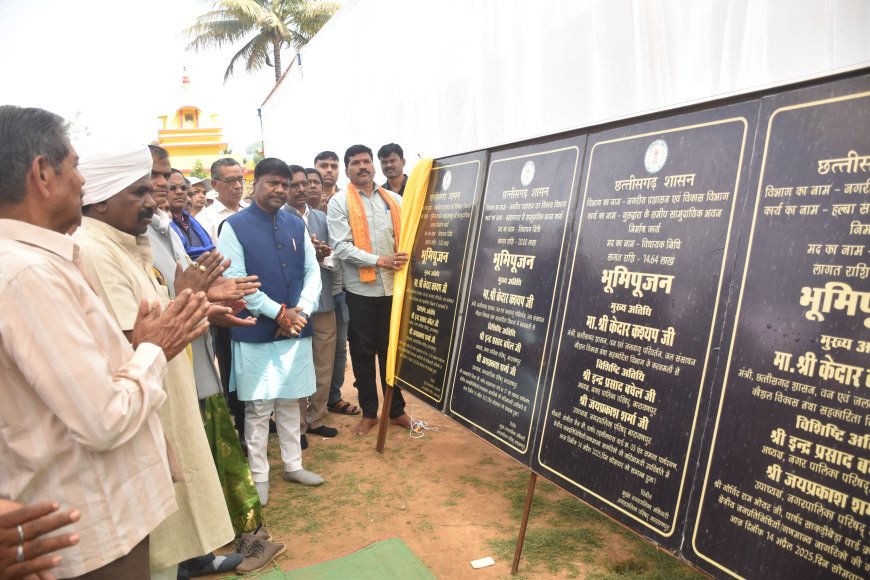 नारायणपुर, 14 अप्रैल 2025 राज्य सरकार के वन एवं जलवायु परिवर्तन, जल संसाधन, कौशल विकास, सहकारिता और संसदीय कार्य मंत्री श्री केदार कश्यप के द्वारा विकासखण्ड नारायणपुर के गायत्री मंदिर में आयोजित लोकार्पण एवं भूमिपूजन कार्यक्रम में शामिल हुए। वन मंत्री श्री केदार कश्यप ने जिले वासियों के लिए 91 लाख 8 हजार 128 रुपए से निर्माण कार्यों की लोकार्पण एवं भूमिपूजन कर सौगात दी।