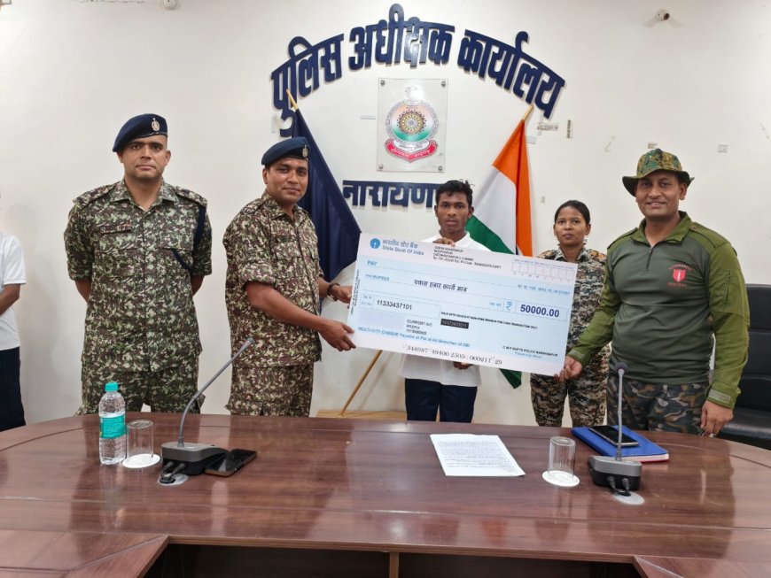 नारायणपुर जिले में सुरक्षा बलों के प्रयासों से चार माओवादियों ने आत्मसमर्पण किया है। इनमें प्रेस टीम कमांडर और माड़ डिवीजन कम्युनिकेशन कमांडर जैसे शीर्ष पदों पर शामिल माओवादी शामिल हैं। आत्मसमर्पण करने वाले माओवादियों को 50 हजार रुपये की प्रोत्साहन राशि प्रदान की गई है और उन्हें नक्सल उन्मूलन नीति के तहत विभिन्न सुविधाएं प्रदान की जाएंगी।