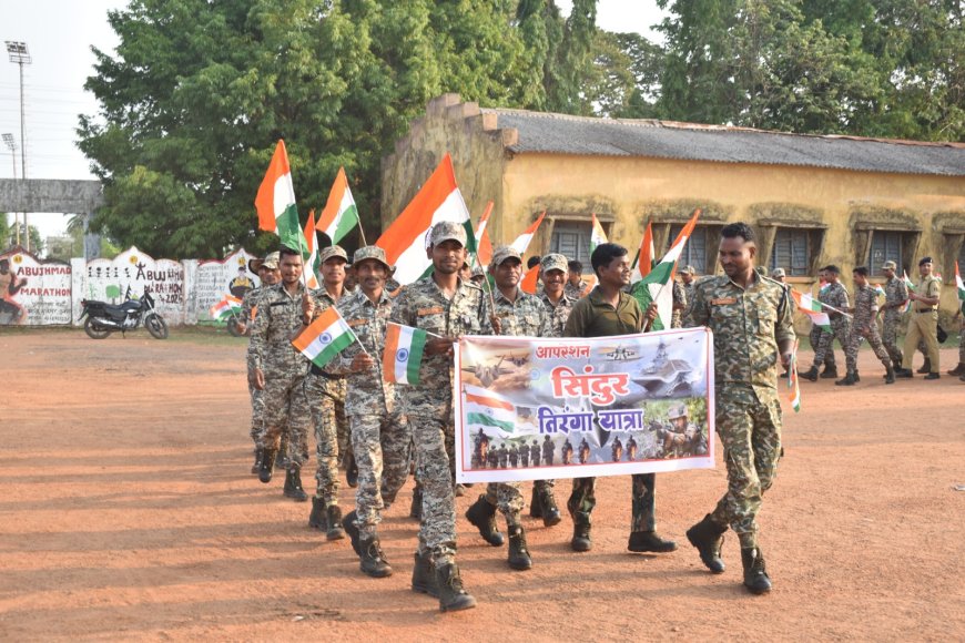 नारायणपुर, 17 मई 2025 जिले में ऑपरेशन सिंदूर अभियान के अंतर्गत देशभक्ति से ओत-प्रोत तिरंगा यात्रा का भव्य आयोजन किया गया। इस अवसर पर जिले के जनप्रतिनिधि, अधिकारी, आम नागरिक, बच्चे एवं जवान बड़ी संख्या में शामिल हुए और देश के प्रति अपनी एकजुटता एवं सम्मान प्रकट किया। तिरंगा यात्रा का