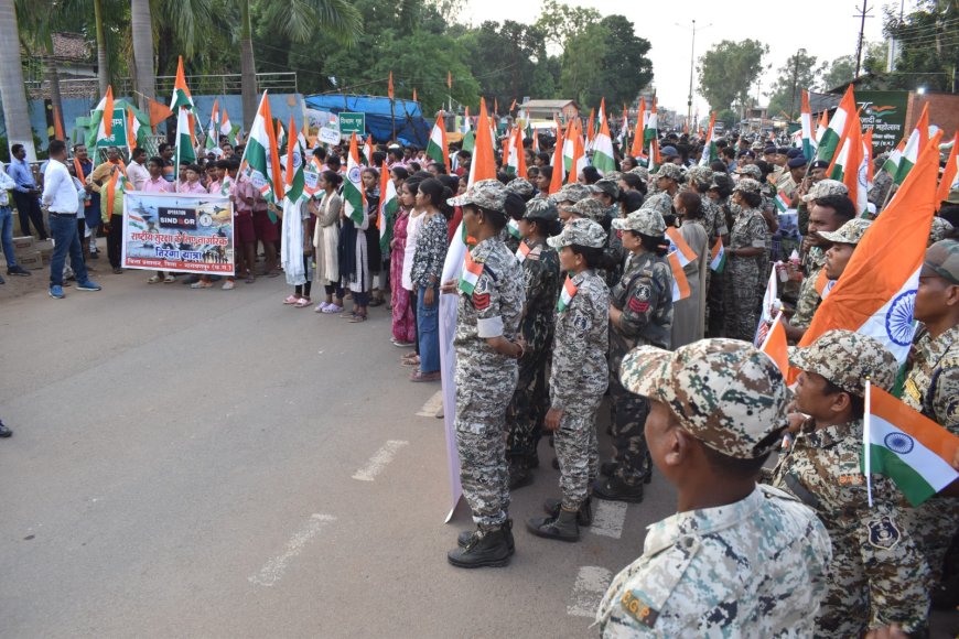 उत्साह के साथ सहभागिता से कार्यक्रम को सफल बनाया। यात्रा के समापन पर सामूहिक राष्ट्रगान का आयोजन किया गया, जिसमें सभी उपस्थित नागरिकों ने गर्व से भाग लिया। आयोजन के अंत में जनप्रतिनिधियों ने तिरंगे के संरक्षण, संवर्धन एवं सम्मान की शपथ दिलाई। उल्लेखनीय है कि आतंकवाद के खिलाफ भारतीय सेना द्वारा चलाए गए ऑपरेशन सिदूंर की सराहना हर देशवासी कर रहा है। भारतीय सेना द्वारा देश की रक्षा हेतु अदम्य साहस का परिचय देते हुऐ देश की सीमाओं की रक्षा अत्यन्त वीरता के साथ की जा रही है। भारतीय सेनाओं के द्वारा पाकिस्तानी आतंकवादियों के 09 ठिकानों को ध्वस्त कर दिया गया है। दूध मांगोगे तो खीर देंगे और कश्मीर मांगोगे तो चीर देंगे के नारे से भक्तिमय हो गया। तिरंगा यात्रा के समापन अवसर पर नगरपालिका अध्यक्ष इंद्र प्रसाद बघेल, सर्व आदिवासी समाज के संरक्षक रूपसाय सलाम, गौतम एस गोलछा ने भी संबोधित किया।