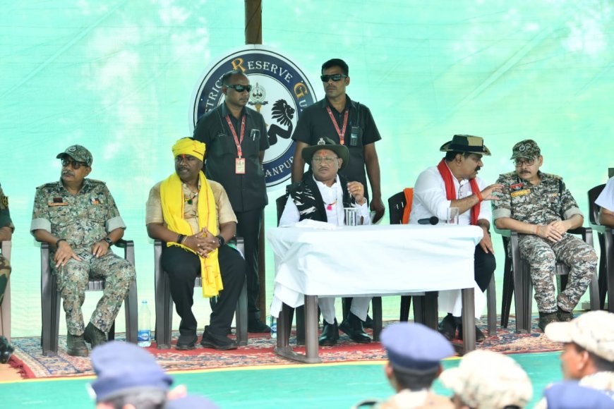 मुख्यमंत्री श्री विष्णुदेव साय ने आज ओरछा ब्लॉक के ग्राम बासिंग स्थित बीएसएफ कैम्प पहुंचकर 21 मई को हुई डीआरजी-बीएसएफ और जिला बल के द्वारा माओवादियों के विरूद्ध नारायणपुर, दंतेवाड़ा और बीजापुर की सरहदी पहाड़ियों में चलाए गए नक्सल विरोधी ऑपरेशन में 27 नक्सलियों को मार गिराने वाले जवानों की हौसला-अफजाई की। इस दौरान मुख्यमंत्री के साथ उप मुख्यमंत्री एवं गृहमंत्री श्री विजय शर्मा, वन एवं जल संसाधन मंत्री श्री केदार कश्यप विशेष रूप से उपस्थित रहे।