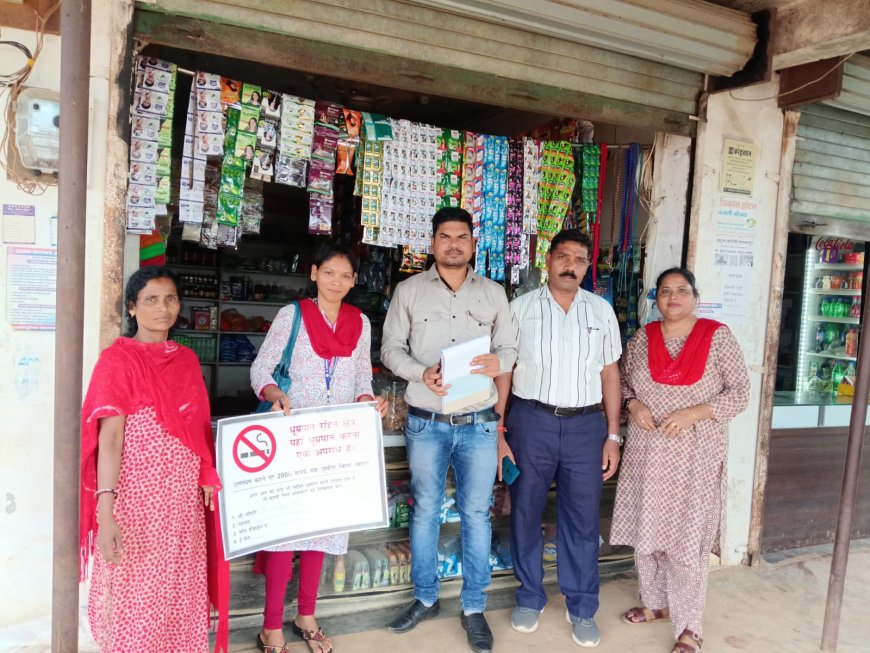 नारायणपुर, 29 मई 2025 राष्ट्रीय तंबाकू नियंत्रण कार्यक्रम अंतर्गत कलेक्टर प्रतिष्ठा ममगाईं के निर्देशानुसार एवं मुख्य चिकित्सा एवं स्वास्थ्य अधिकारी डॉ एसएस राज व जिला कार्यक्रम प्रबंधक श्री राजीव सिंह के मार्गदर्शन में स्वास्थ्य विभाग, पुलिस विभाग, खाद्य एवं औषधि प्रशासन, महिला एवं बाल विकास विभाग, श्रम विभाग व नगरपालिका की संयुक्त टीम द्वारा कोटपा अधिनियम 2003 के तहत् चालानी कार्रवाई की गई। जिले में बस स्टैंड व ग्राम देवगांव, बेनूर व भाटपाल में स्कूलों के आस -पास दुकानों, होटलों व पान