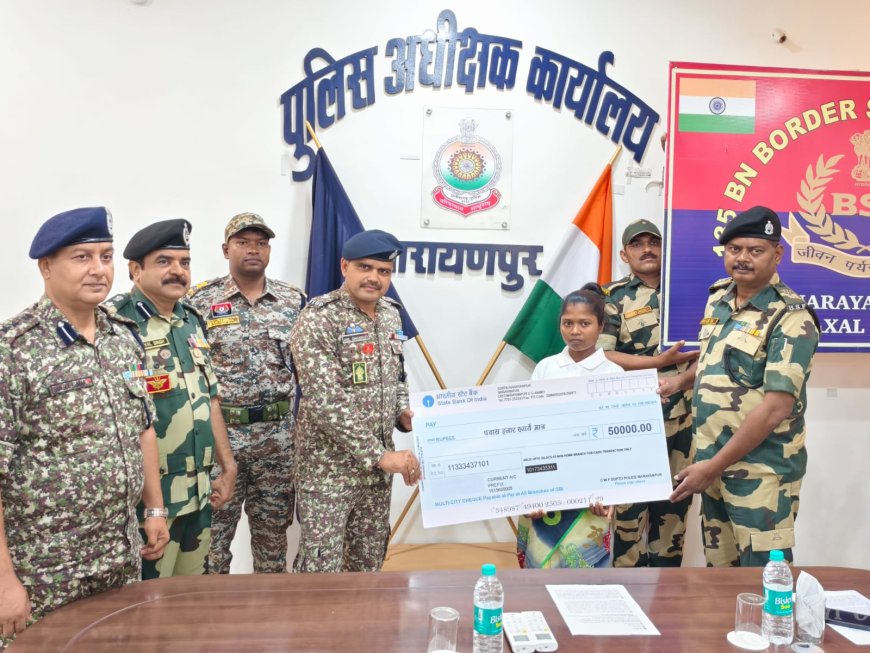 आत्मसमर्पित माओवादियों को प्रोत्साहन राशि 50 हजार का चेक प्रदान किया गया और उन्हें नक्सल उन्मूलन नीति के तहत मिलने वाली सभी प्रकार की सुविधाएं दिलाई जाएंगी। पुलिस महानिरीक्षक श्री सुंदरराज पी ने बताया कि सरकार की पुनर्वास नीति के फायदे, घर, नौकरी ने इन्हें आकर्षित किया है।