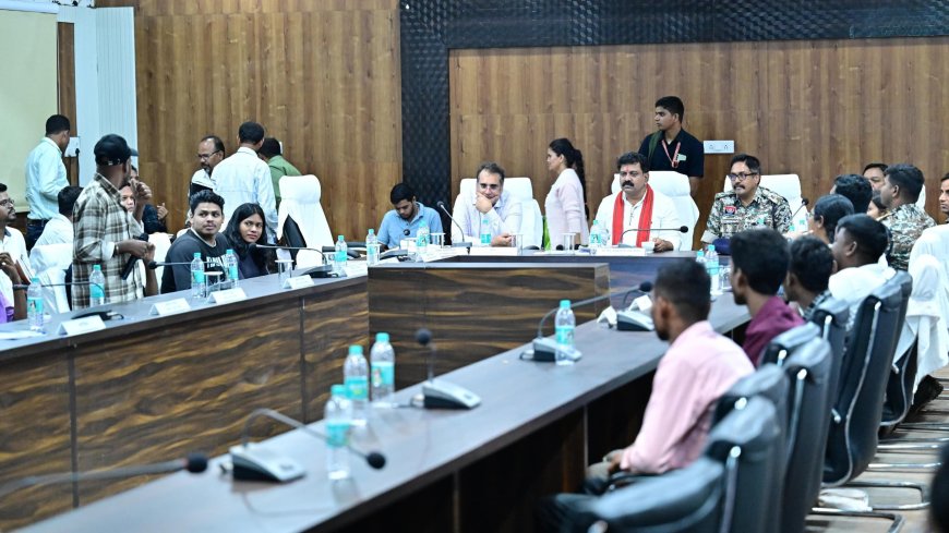 नारायणपुर, 03 जुलाई 2025 प्रदेश के उपमुख्यमंत्री श्री विजय शर्मा ने युवा संवाद कार्यक्रम में नारायणपुर जिले के युवाओं, सोशल मीडिया क्रिएटर्स, फोटोग्राफर्स और वीडियोग्राफर्स से बुधवार को जिला पंचायत के सभा कक्ष में मुलाकात की। यह संवाद अबूझमाड़ की सांस्कृतिक, प्राकृतिक और सामाजिक विशिष्टताओं को राष्ट्रीय स्तर पर पहचान दिलाने की दिशा में एक प्रेरक पहल के रूप में सामने आया।