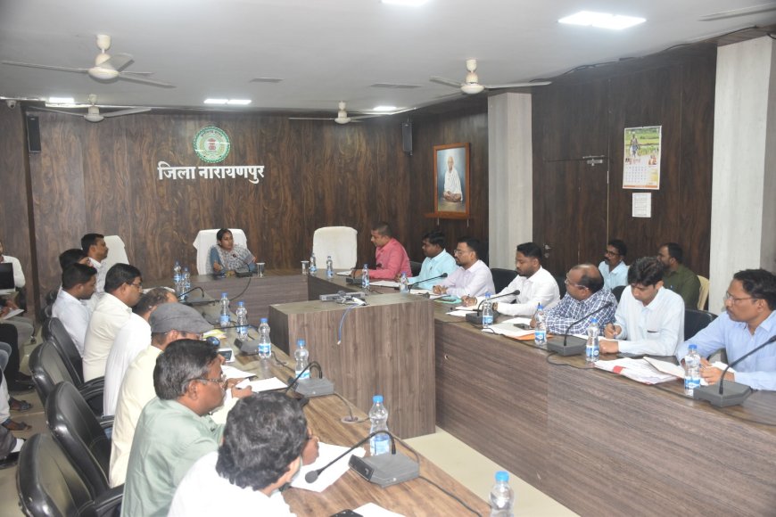 नारायणपुर, 08 जुलाई 2025 जिला कार्यालय के सभाकक्ष में कलेक्टर प्रतिष्ठा ममगाईं की अध्यक्षता में जिला स्तरीय अधिकारियों की साप्ताहिक समय-सीमा बैठक आयोजित की गई। बैठक में उन्होंने नियद नेल्ला नार योजना के अंतर्गत स्वीकृत विकास कार्यों को शीघ्र पूर्ण करने के निर्देश दिए। साथ ही, नोडल अधिकारियों को स्कूल, आंगनबाड़ी एवं आश्रम छात्रावासों का निरीक्षण कर समयावधि में रिपोर्ट प्रस्तुत करने के लिए कहा गया।