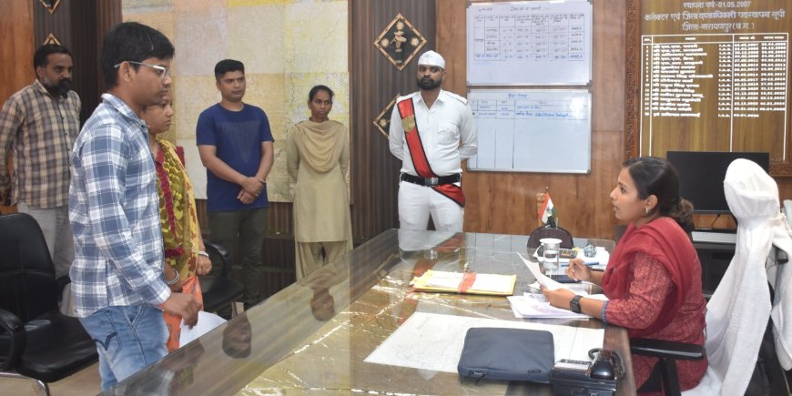 नारायणपुर, 14 जुलाई 2025 कलेक्टर प्रतिष्ठा ममगाईं ने कलेक्ट्रेट कार्यालय में आयोजित साप्ताहिक जनदर्शन कार्यक्रम में जिले के विभिन्न गांवो से पहुंचे लोगांे से मुलाकात किया। उन्होंने मुलाकात कर उनकी मांगो एवं समस्याओं और शिकायत संबंधी आवेदनों का निराकरण कराने भरोसा दिलाया एवं संबंधित विभाग के अधिकारियों को त्वरित कार्यवाही करने के निर्देश दिये। आज जनदर्शन में कृष्णपाल दास तहसीलपारा द्वारा तहसीलदार द्वारा पारित आदेश के अनुपालन हेतु अतिक्रमण हटवाने, सुरमोतीन पद भृत्य बुनियादी गरांजी द्वारा स्थानांतरण को निरस्त करने, विश्वनाथ भोयर ग्राम बेलगांव द्वारा एनएच 130डी रोड के संबंध में, बसंत देवांगन बुधवारी बाजार द्वारा राजस्व प्रकरण वर्ष 2020-21 की सत्यापित प्रतिलिपि तहसील कार्यालय नारायणपुर से दिनांक 9 जनवरी 2025 को चाहने बाबत नकल आवेदन करने के बाद से आज दिनांक तक अप्राप्त होने के संबंध में, आयतीबाई नाग बखरूपारा द्वारा आने जाने के मार्ग के अवशेष को हटा कर हमें मुख्य मार्ग तक आने जाने हेतु मार्ग दिलाने, सरपंच ग्राम पंचायत कुढ़ागांव निर्माण कार्य की स्वीकृति अनुमोदन, समदेर दुग्गा ग्राम गोर्रा, इरको द्वारा आंगनबाड़ी भवन निर्माण कार्य पूर्ण करने, सरपंच ग्राम पचांयत मातला द्वारा ग्राम सिरपुर में घोटूल निर्माण, ग्राम मातला से पानीगांव सड़क निर्माण एवं पंचायत भवन निर्माण, महेश पिता चमरा एवं अन्य ग्राम फरसगांव एवं अमृत सरोवर योजना के अन्तर्गत बगैर अनुमति एवं मुआवजा के जमीन अधिग्रहण कर तालाब निर्माण किए जाने के संबंध में न्याय दिलाने, निर्मला साहू द्वारा जिले में संचालित पुस्तकालय में कार्य करने, बिरेन्द्र ठाकुर ग्राम आमाडुला जिला बालोद द्वारा अनुकम्पा नियुक्ति के संबंध में, गणेश सोढ़ी सरपंच नाऊमुजमेटा द्वारा सीसी रोड स्वीकृति करवाने, सरपंच एवं अन्य ग्रामवासी करलखा द्वारा गांव के शासकीय भूमि का सीमांकन कर अतिक्रमण हटाने, स्कूल मैदान में गोबर रखने एंव पुराने सीसी रोड को डामरीकरण करवाने, पिंकी उसेण्डी अध्यक्ष जनपद पंचायत नारायणपुर द्वारा निर्माण कार्यो की स्वीकृति प्रदाय, सरपंच एवं अन्य ग्रामवासी ग्राम पंचायत ओरछा द्वारा ग्राम पचंायत झारावाही में स्थायी नर्स या डॉक्टर स्कूल में लाईट टॉवर एवं गांव की मूलभूत सुविधा हेतु तथा सड़क को बनवाने हेतु, बुधराम कोर्राम सरपंच ग्राम पंचायत तारागांव द्वारा नवीन प्राथ्मिक शाला भवन, नवीन आंगनबाड़ी भवन के मांग, आविद खान कुम्हारपारा द्वारा सहायता राशि प्रदाय करने, सरपंच एवं उपसरपंच ग्राम पंचायत महिमागवाड़ी द्वारा चार दिवारी निर्माण कार्य की स्वीकृति प्रदाय करने, लता कोर्राम एवं जिला पंचायत सदस्य क्षेत्र क्रमांक 7 द्वारा हास्पि