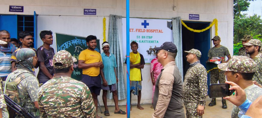 नारायणपुर, 15 जुलाई उप-महानिरीक्षक (क्षेत्रीय मुख्यालय भुवनेश्वर) भारत तिब्बत सीमा पुलिस श्री सजीव रोलबा द्वारा 15 जुलाई 2025 को अबुझमाड के नक्सल प्रभावित क्षेत्र में 53वी वाहिनी भारत तिब्बत सीमा पुलिस की सी.ओ.बी. कस्तुरमेटा में पशु चिकित्सालय का उदघाटन किया गया। इस अवसर पर श्री राजीव रोलबा उप-महानिरीक्षक ने ग्रामीणों को सम्बोधित करते हुए कहा कि, 53वी वाहिनी भारत तिब्बत सीमा पुलिस द्वारा सीओबी आकाबेडा में आम जन के लिये पहले से ही फील्ड हॉस्पीटल संचालित किया जा रहा है। जिससे आप सभी ग्रामवासी स्वास्थ्य लाभ ले रहे है साथ ही आज कस्तुरमेटा में पशु चिकित्सालय स्थापित होने से ग्रामीण ईलाकों में पशुधन विकाश को बढावा मिलेगा। इस हॉस्पीटल का मुख्य उदेश्य पशु पालको को पशुधन की देखभाल और प्रबंधन के बारे में प्रशिक्षित करना है साथ ही पशुधन की उत्पादकता और गुणवत्ता में सुधार करना, पशुपालकों को पशुधन के स्वास्थ्य और पोषण के बारे में जानकारी प्रदान करना तथा पशुधन की बीमारियों के निदान एवं उपचार करना व समय-समय पर विभिन्न प्रकार की मौसमी बीमारियों के लिये टीकाकरण व दवाईयां वितरित करना है। भारत सरकार व राज्य सरकार द्वारा पशुधन विकास के लिए संचालित विभिन्न प्रकार की कल्याणकारी योजनाओं को अबूझमाड़ क्षेत्र के प्रत्येक गावं में पहुँचाने में सहयोग किया जायेगा। जिससे सभी ग्रामीण वासियों को पशुधन व दुग्ध उत्पादन से रोजगार के अवसर मिलेंगें। 53वी वाहिनी भारत तिब्बत सीमा पुलिस बल की इस पहल का उपस्थित समस्त ग्रामवासियों ने सराहना की। इस मौके पर श्री संजय कुमार, सेनानी, 53वीं वाहिनी, श्री राजीव गुप्ता, सेनानी, 45वीं वाहिनी, श्री अनिल चौधरी, उप-सेनानी, 53वी वाहिनी, रजनीकांत उप-सेनानी, 45वीं वाहिनी, डॉ० सुप्रदीप रेड्डी (एस०एम०ओ) 53वी वाहिनी, डॉ० मोहन सुंदरम एन० (एस०वी०ओ०) 45वीं वाहिनी, अन्य पदाधिकारी एवं ग्रामवासी उपस्थित रहे