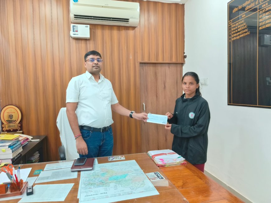 नारायणपुर, 22 जुलाई 2025 जिले की उभरती हुई खेल प्रतिभाओं को प्रोत्साहन देने के उद्देश्य से कलेक्टर प्रतिष्ठा ममगाई के निर्देशानुसार डिप्टी कलेक्टर डॉ. समित गर्ग द्वारा सी.एस.आर. मद से तायक्वांडो एवं किक बॉक्सिंग की खिलाड़ी अंजली कांगे एवं सुमन सलाम को 18 हजार 700 रूपये की आर्थिक सहायता प्रदान की गई है। दोनों खिलाड़ियों के प्रस्तुत आवेदन के आधार पर आर्थिक सहायता हेतु कलेक्टर द्वारा निदेशक जायसवाल निको इंडस्ट्रीज लिमिटेड को पत्र प्रेषित किया गया था। कंपनी द्वारा सी.एस.आर. मद अंतर्गत 18 हजार 700 रुपए की राशि उपलब्ध कराई गई। अंजली कांगे एवं सुश्री सुमन सलाम प्रत्येक को 9 हजार 350 रूपये की सहयोग राशि प्रदान की गई है। यह सहयोग जिला प्रशासन तथा औद्योगिक संस्थानों के संयुक्त प्रयासों से जिले के प्रतिभाशाली खिलाड़ियों को प्रोत्साहन देने की दिशा में एक सराहनीय कदम माना जा रहा है।