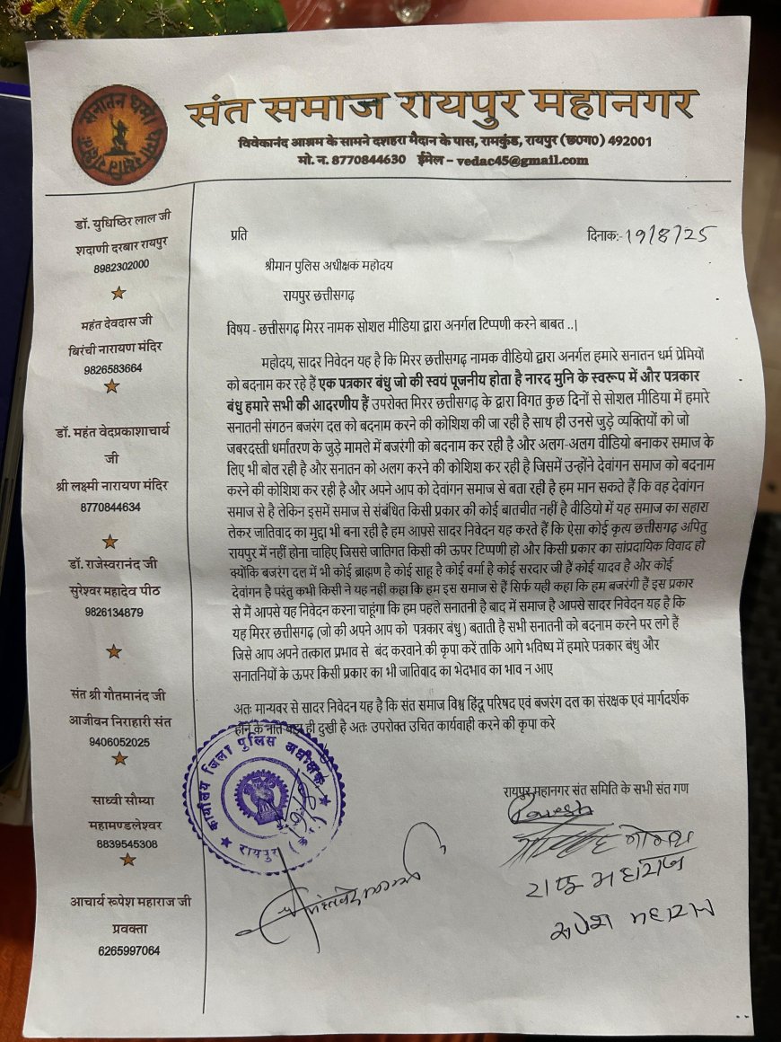 इस मामले को लेकर हिंदू संगठनों और संत समाज ने कड़ा रुख अपनाया है। हिंदू संतों ने इस संबंध में रायपुर SSP को ज्ञापन सौंपकर मांग की है कि फर्जी चैनल के संचालक रॉकी द बॉक्सर और महिला यूट्यूबर सोमा देवांगन के खिलाफ तत्काल FIR दर्ज कर कठोर से कठोर कार्रवाई की जाए। उनका कहना है कि यदि जल्द कार्यवाही नहीं हुई तो व्यापक आंदोलन किया जाएगा।