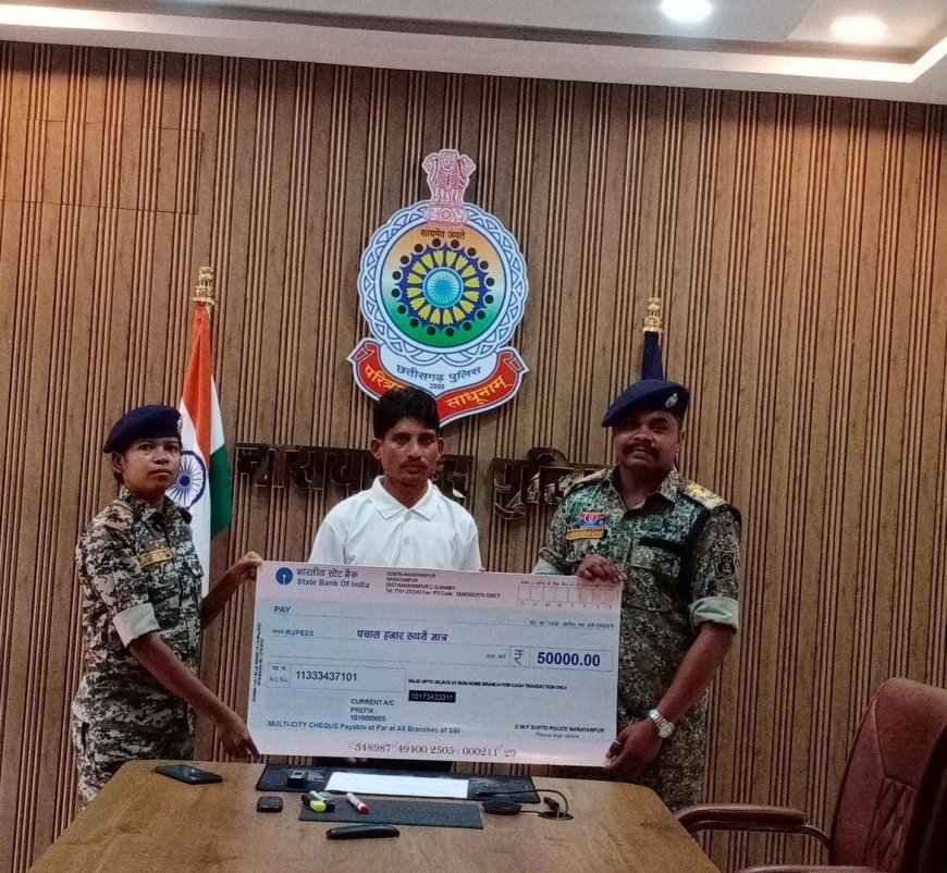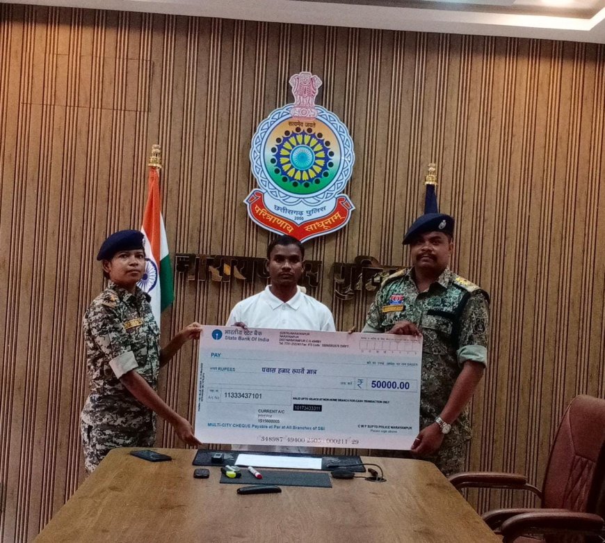 आत्मसमर्पण करने वाले सभी माओवादियों को अच्छी जिंदगी जीने के लिए 50-50 हजार रुपये प्रोत्साहन राशि का चेक प्रदान किया गया है। आत्मसमर्पित नक्सलियों को छत्तीसगढ़ सरकार की नक्सल उन्मूलन नीति के तहत मिलने वाली सभी प्रकार की सुविधाएं प्रदान की जाएंगी।