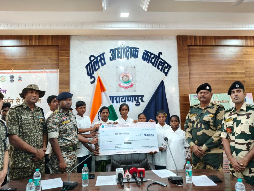 आत्मसमर्पित माओवादियों को प्रोत्साहन राशि 50-50 हजार का चेक किया गया प्रदाय, सभी पुनर्वासित नक्सलियों को छग शासन की नक्सल उन्मूलन नीति के तहत् मिलेंगी विभिन्न प्रकार की सुविधाएं।