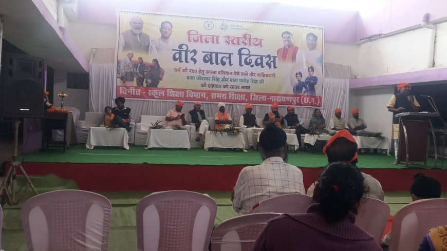 नारायणपुर, 25 दिसंबर 2025 - वीर बाल दिवस के अवसर पर नारायणपुर में जिला स्तरीय कार्यक्रम आयोजित किया गया, जिसमें बच्चों ने छोटे साहेबजादों जोरावर सिंह और फतेह सिंह के बलिदान को याद किया। कार्यक्रम में जिला पंचायत अध्यक्ष नारायण मरकाम, श्री रूपसाय सलाम और श्री इन्द्र प्रसाद बघेल मुख्य अतिथि के रूप में उपस्थित थे।