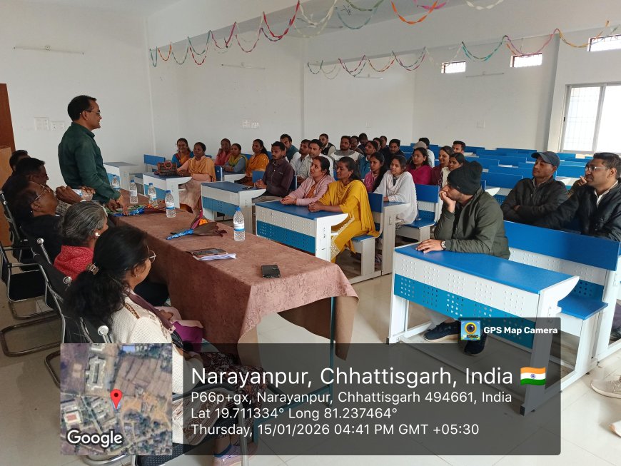 नारायणपुर, 16 जनवरी 2026 वीरांगना रमोतीन माड़िया शासकीय आदर्श महिला महाविद्यालय एवं शासकीय नवीन महाविद्यालय छोटे डोंगर, नारायणपुर में प्राचार्य के निलंबन के उपरांत आयुक्त, उच्च शिक्षा विभाग के आदेशानुसार श्री भगवान दास चांडक ने प्रभारी प्राचार्य के रूप में 15 जनवरी को विधिवत कार्यभार ग्रहण किया।कार्यभार ग्रहण की प्रक्रिया प्राचार्य डॉ. एस. आर. कुंजाम अग्रणी महाविद्यालय, शासकीय स्वामी आत्मानंद स्नातकोत्तर महाविद्यालय की उपस्थिति में निर्धारित नियमों के अनुरूप संपन्न हुई। नए प्रभारी प्राचार्य के पदभार ग्रहण करते ही दोनों महाविद्यालयों के शिक्षक एवं कर्मचारियों द्वारा पुष्पगुच्छ भेंट कर उनका स्वागत एवं अभिनंदन किया गया।इस अवसर पर नवपदस्थापित प्रभारी प्राचार्य श्री चांडक ने कहा कि महाविद्यालयों की शिक्षण-व्यवस्था, प्रशासनिक कार्यप्रणाली एवं आवश्यक संसाधनों पर विशेष ध्यान देना उनकी प्राथमिकता होगी। उन्होंने शैक्षणिक गुणवत्ता में सुधार, प्रशासनिक अनुशासन तथा विभागीय दिशा-निर्देशों के अनुरूप कार्य करने का संकल्प व्यक्त किया। साथ ही सभी शिक्षकों एवं कर्मचारियों के सहयोग से महाविद्यालयों की शैक्षणिक व्यवस्था को और अधिक सुदृढ़ बनाने का आश्वासन दिया।कार्यक्रम में लाइब्रेरियन डॉ. क्षमा ठाकुर, सहायक प्राध्यापक निहारिका शोरी, विपिन कुमार, डंकेश्वर बर्मन, समस्त अतिथि व्याख्याता सहित फिंगिम नेताम एवं पुष्पा मारगिया सहित संस्था के अधिकारी एवं कर्मचारी उपस्थित थे।
