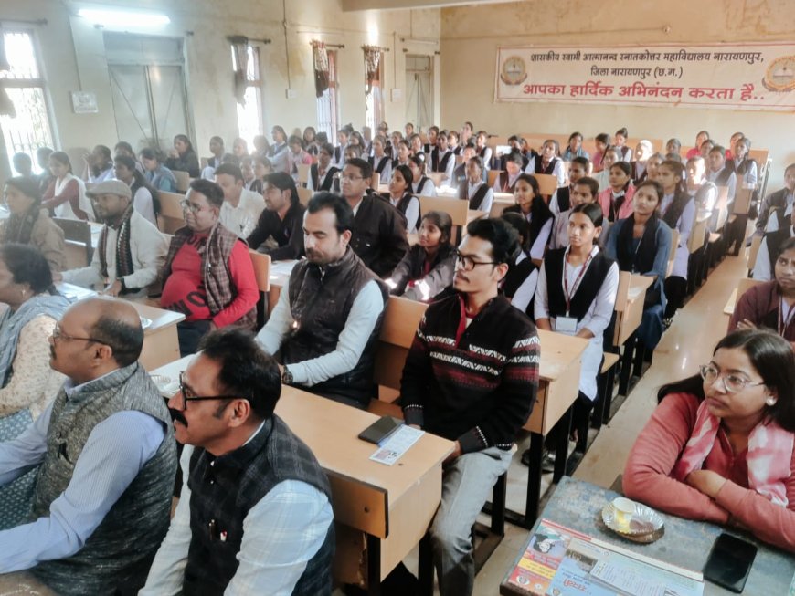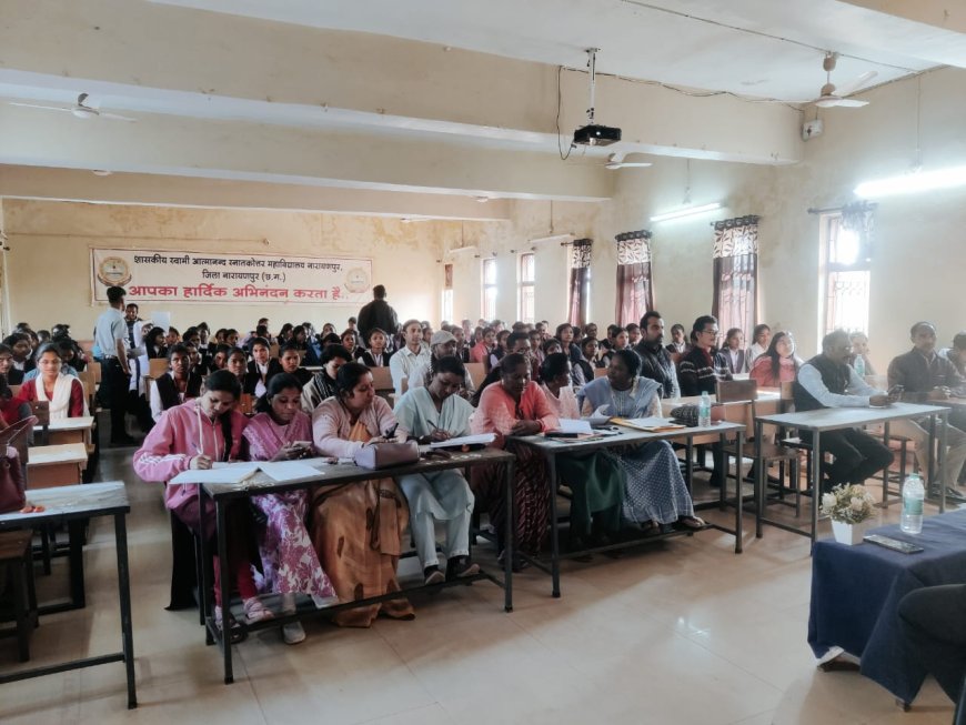 नारायणपुर, 19 जनवरी 2026 19 जनवरी 2026 को जिला महिला एवं बाल विकास विभाग नारायणपुर द्वारा शासकीय स्वामी आत्मानंद स्नातकोत्तर महाविद्यालय एवं वीरांगना रमोतीन माडिया शासकीय आदर्श महिला महाविद्यालय नारायणपुर के संयुक्त तत्वाधान में हुआ। प्राचार्य डॉ. एस. आर. कुंजाम की अध्यक्षता में मां सरस्वती की छायाचित्र पर दीप प्रज्ज्वलित कर एक दिवसीय कार्यशाला का शुभारंभ किया। जिसका मुख्य उद्देश्य कार्य स्थल पर महिलाओं की यौन उत्पीड़न (निवारण प्रतिषेध एवं प्रतितोष) अधिनियम 2013 की जानकारी देने के