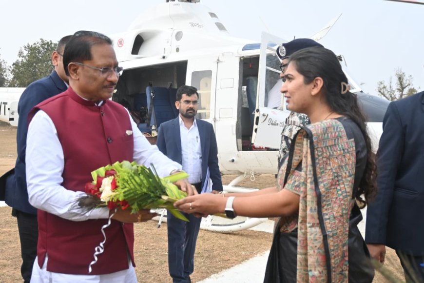 मुख्यमंत्री श्री विष्णु देव साय को नारायणपुर चिपरेल हेलीपैड में जनप्रतिनिधियों और अधिकारियों ने किया आत्मीय स्वागत