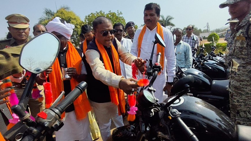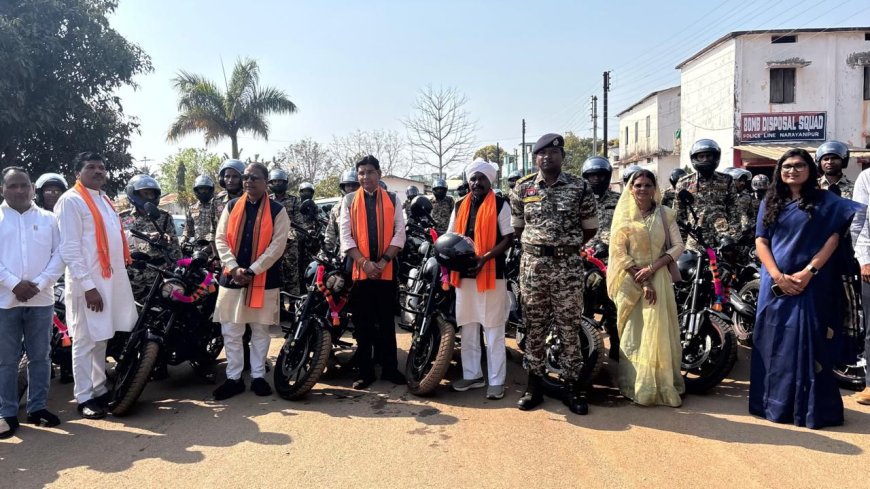 नारायणपुर, 13 फरवरी 2026 नारायणपुर पुलिस को नक्सल विरोधी अभियान में मदद करने के लिए 200 हाईटेक मोटर साइकिल मिली है। जिला के प्रभारी मंत्री श्री टंकराम वर्मा और माननीय मंत्री श्री केदार कश्यप ने डीआरजी जवानों को टीव्हीएस "रोनिन 225 सीसी" की 200 मोटर साइकिल सुपुर्द की।