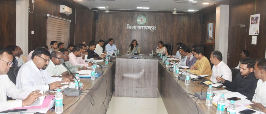 नारायणपुर, 03 फरवरी 2026 जिला कार्यालय के सभाकक्ष में कलेक्टर नम्रता जैन की अध्यक्षता में साप्ताहिक समय-सीमा की बैठक आयोजित की गई। बैठक में जिले के विभिन्न विभागों द्वारा संचालित योजनाओं एवं लंबित प्रकरणों की विस्तृत समीक्षा की गई। कलेक्टर ने सभी जिला स्तरीय अधिकारियों को कार्यों में तेजी लाने तथा प्रकरणों का समय-सीमा में निराकरण सुनिश्चित करने के निर्देश दिए। उन्होंने कहा कि जिले के निर्माण एवं विकास कार्यों को प्राथमिकता के साथ गुणवत्तापूर्ण ढंग से पूर्ण किया जाए।
